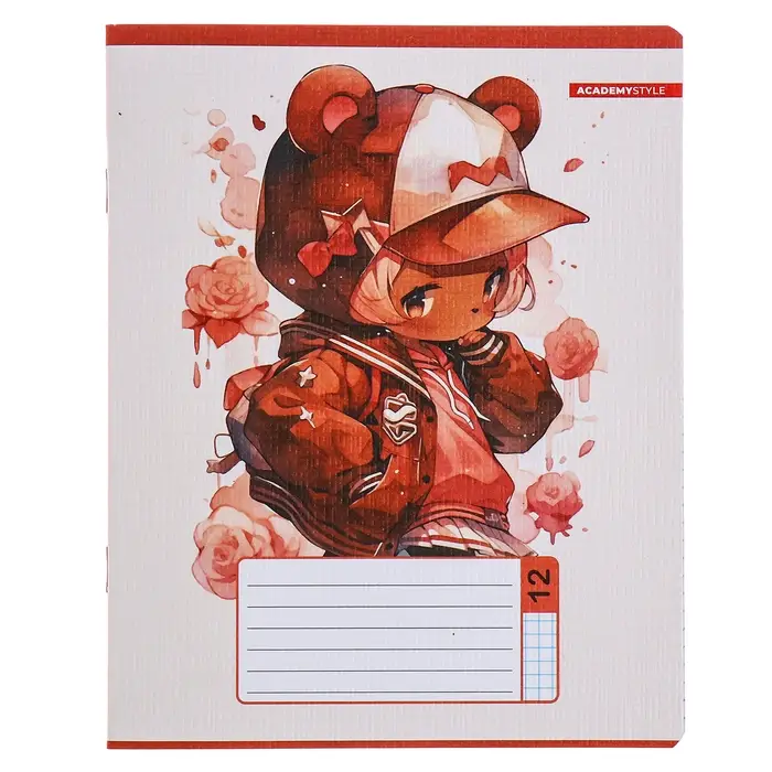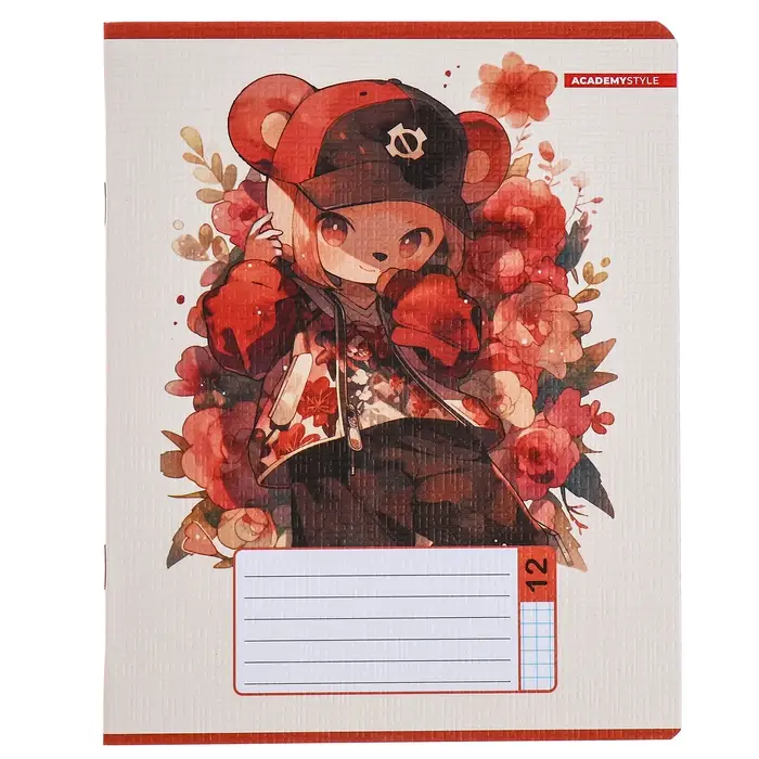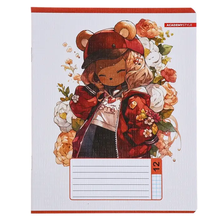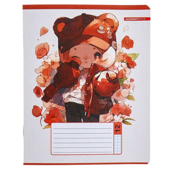 Тетрадь 12 листов в клетку «С ушками», обложка бумага, текстура, МИКС