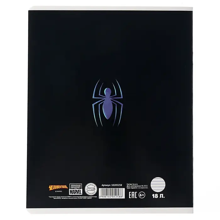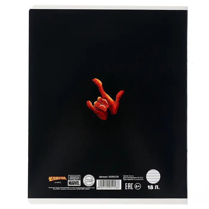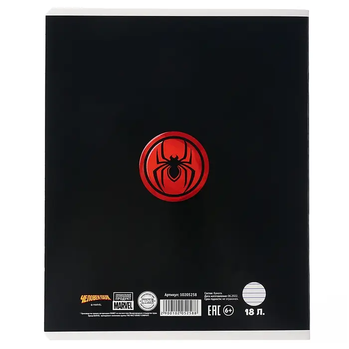 Тетрадь в линейку 18 листов, 5 видов МИКС, обложка мелованный картон, «Человек-паук»