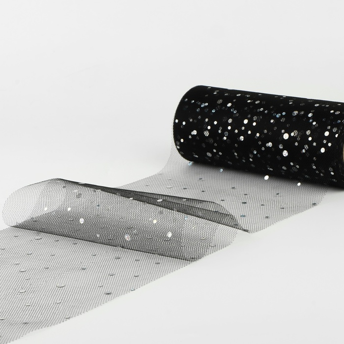 Фатин с блёстками, 15 см, 11 ± 1 г/кв.м, 23 ± 1 м, цвет чёрный №21