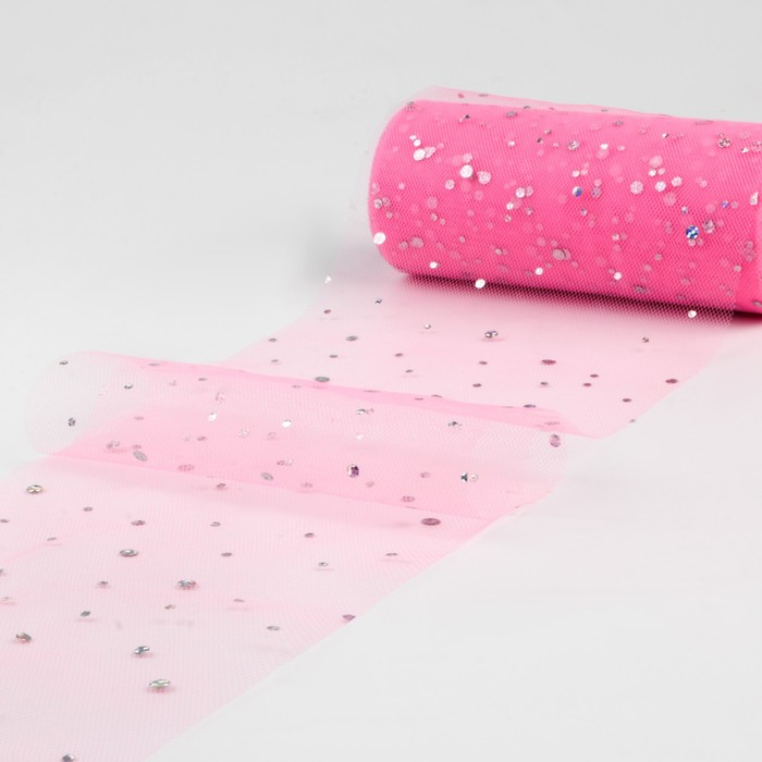 Фатин с блёстками, 15 см, 11 ± 1 г/кв.м, 23 ± 1 м, цвет розовый №4