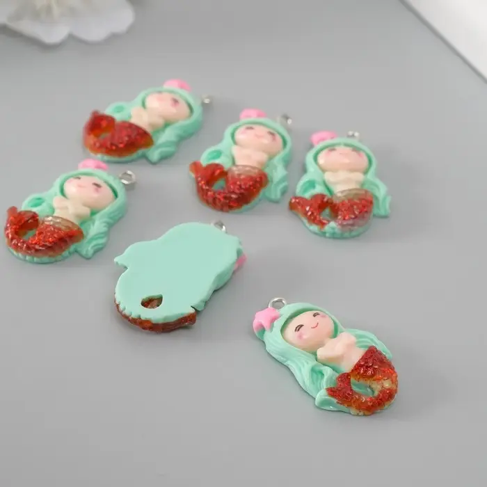 Подвеска для творчества пластик "Русалочка с голубыми волосами" 3,4х2,1х0,6 см