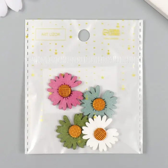 Декор для творчества иск. замша "Цветная ромашка" МИКС 2,5х2,5 см