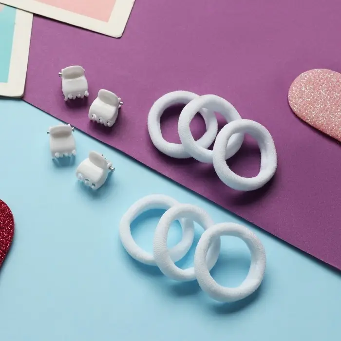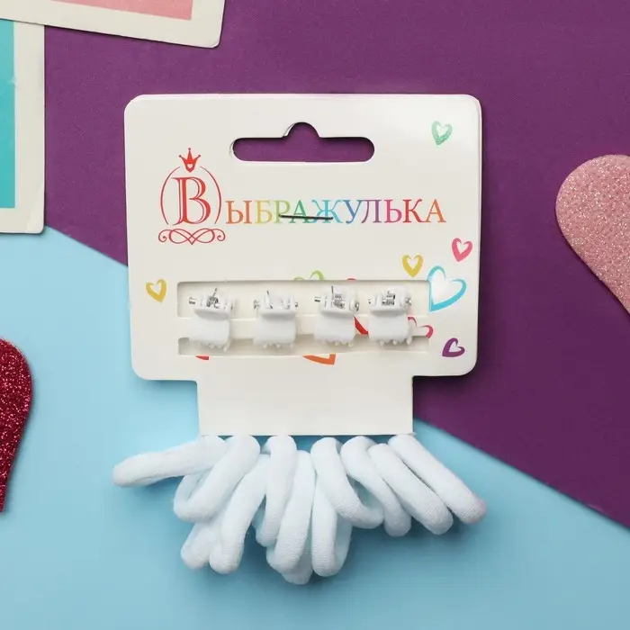 Набор для волос "Затейница" (12 резинок 2 см, 4 краба) классика, белый