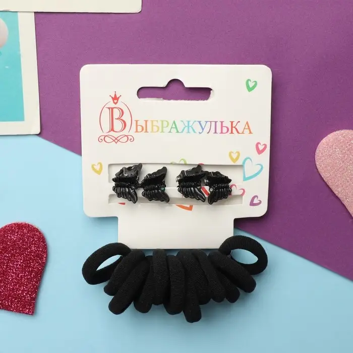 Набор для волос "Затейница" (12 резинок 2 см, 4 краба) бабочки, чёрный