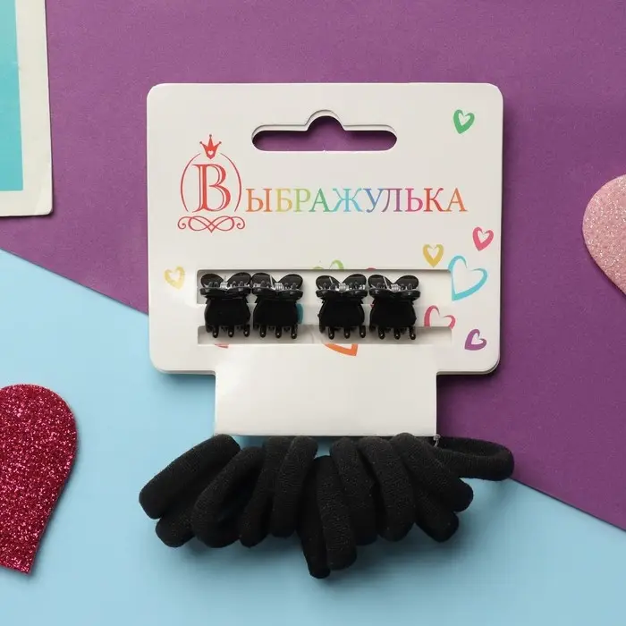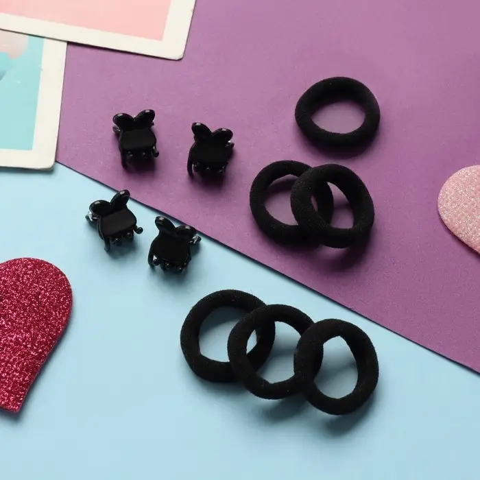 Набор для волос "Затейница" (12 резинок 2 см, 4 краба) ушки, чёрный