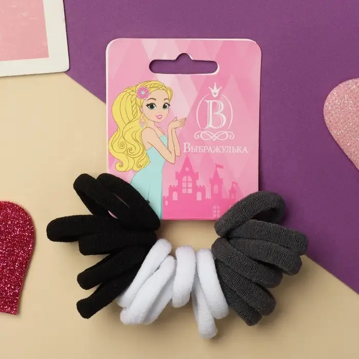Резинка для волос "Спорт" (набор 18 шт) классик галант, 2,5 см, белый серый чёрный