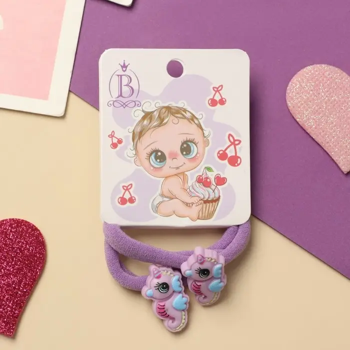 Резинка для волос "Пупсёнок" (набор 2 шт) морской конёк, 4 см, сиреневый