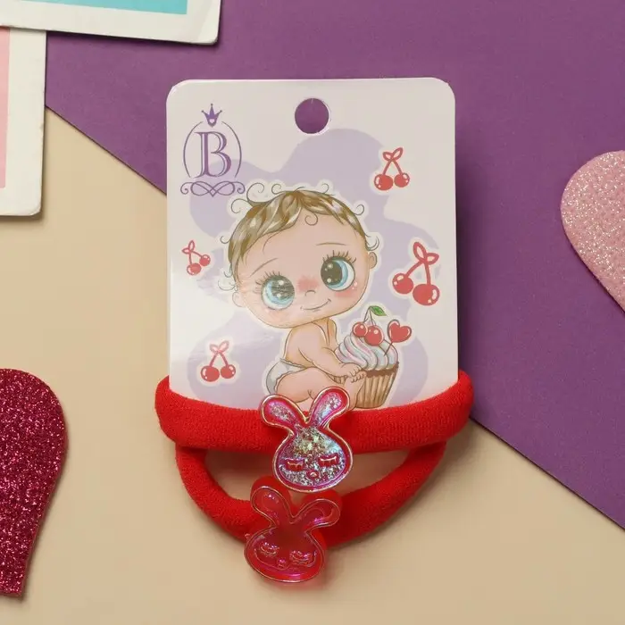 Резинка для волос "Пупсёнок" (набор 2 шт) зайчик, 4 см, красный