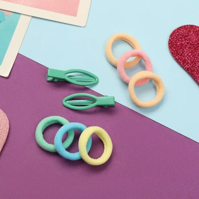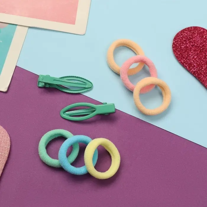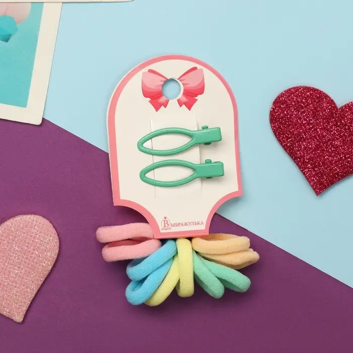 Набор для волос "Карамель" (10 резинок 1,5 см, 2 зажима 3 см) рыбка, зелёный