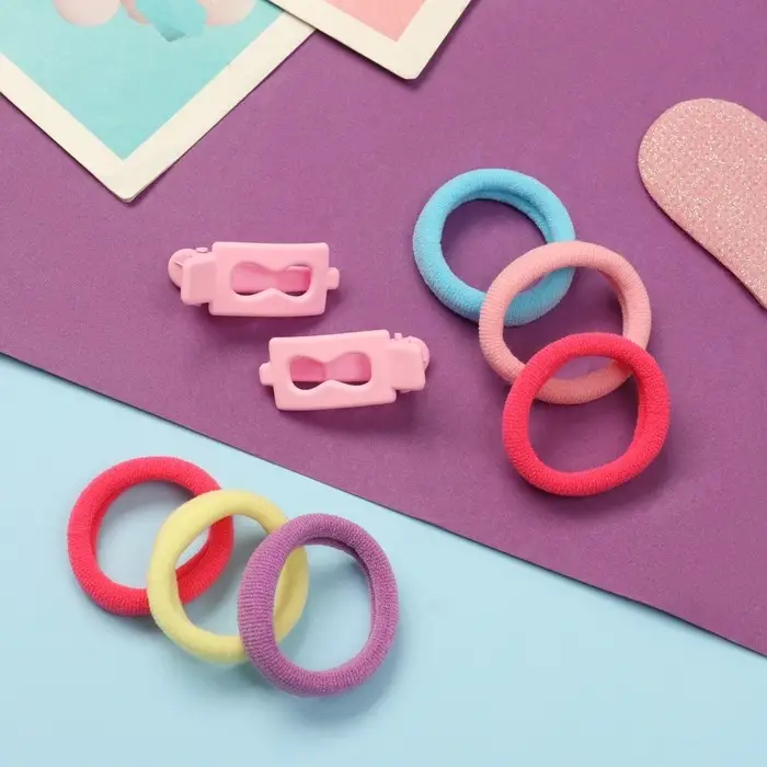 Набор для волос "Карамель" (10 резинок 3 см, 2 зажима 3 см) бесконечность, розовый