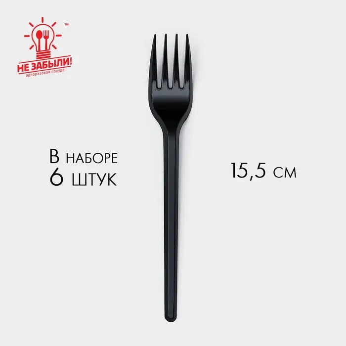 Вилки одноразовые Не ЗАБЫЛИ!, набор 6 шт., пластик, 15.5 см, столовая, чёрная