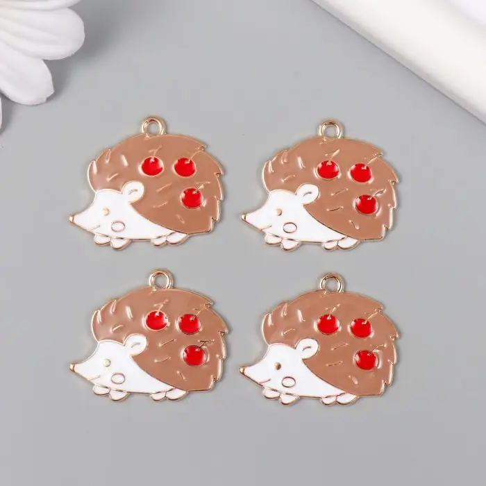 Декор для творчества металл "Ежик с яблоками" эмаль 2,8х2 см