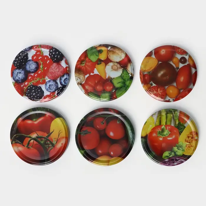 - Эти крышки выполнены из прочной жести и украшены стильным рисунком, что делает их не только практичными, но и визуально привлекательными.
