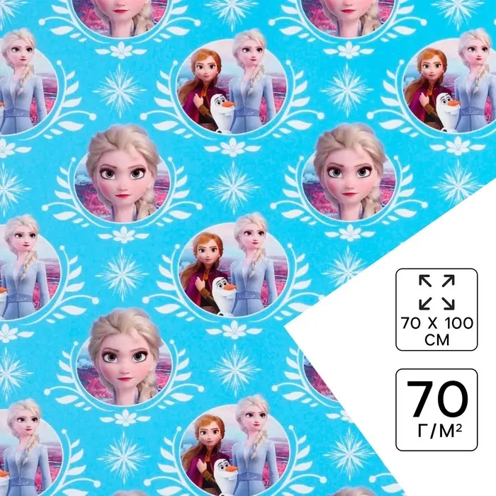 Бумага упаковочная глянцевая, Холодное сердце, 70х100 см