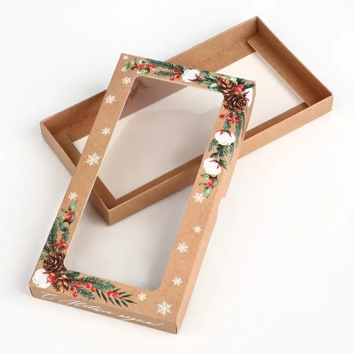 Коробка для шоколада «Еловые веточки», с окном, 9.4 х 1.7 х 18.4 см