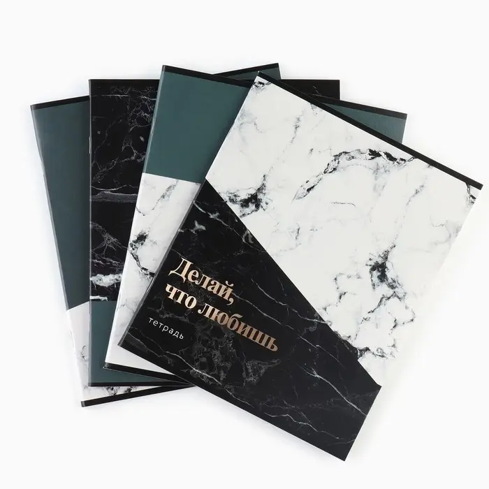 Тетрадь в клетку, 36 л., А5, на скрепке, блок №1 «Мрамор. Фразы» МИКС