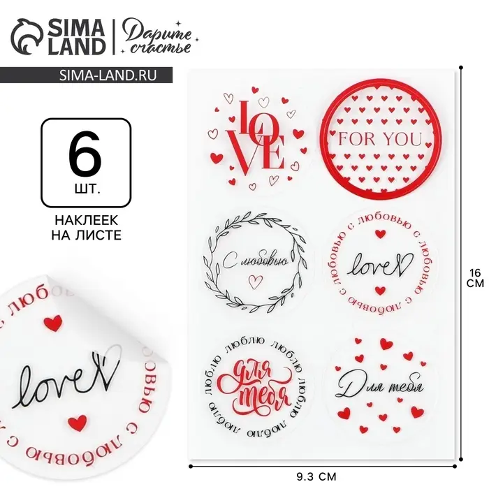 Наклейки для подарков и цветов «С любовью», винил, 9.3 х 16 см