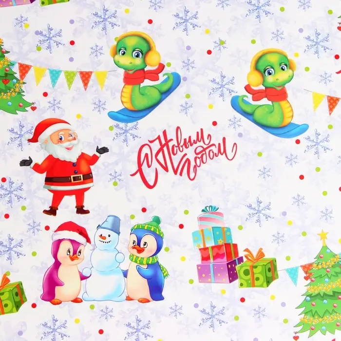 Бумага упаковочная новогодняя «Змейка с друзьями Символ года», глянец, 80 г/м² , 70×100 см