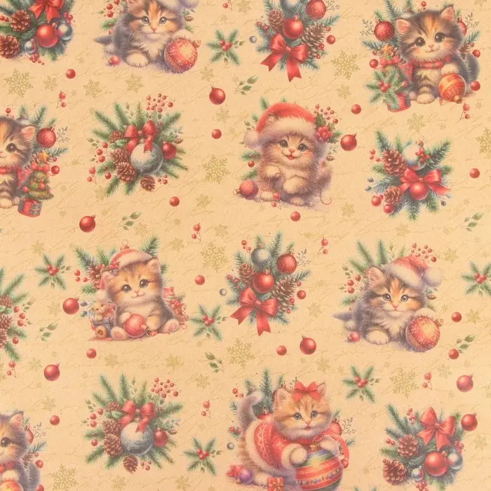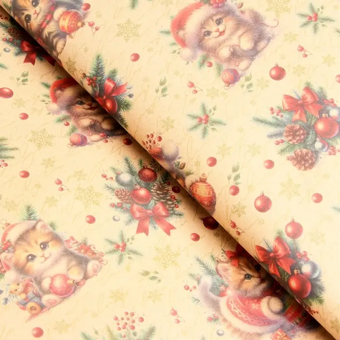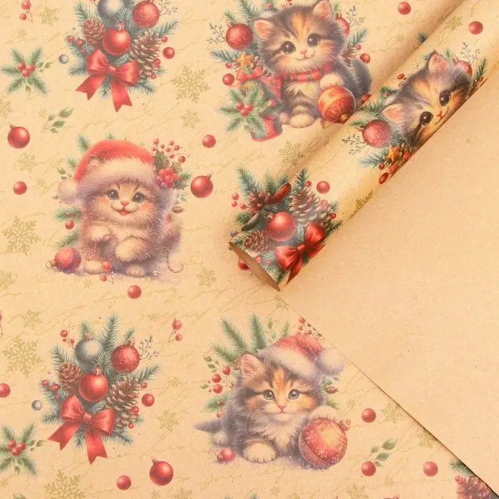 Бумага упаковочная новогодняя «Котик», бурый крафт, 80 г/м² , 50×70 см