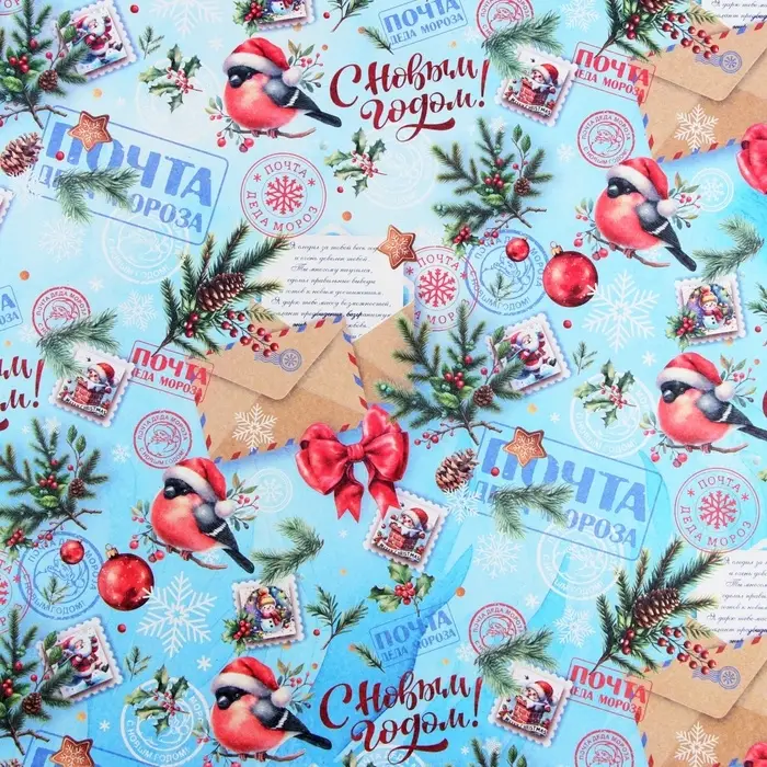 Бумага упаковочная «Снегирь на письме», белый крафт, 80 г/м² , 50×70 см