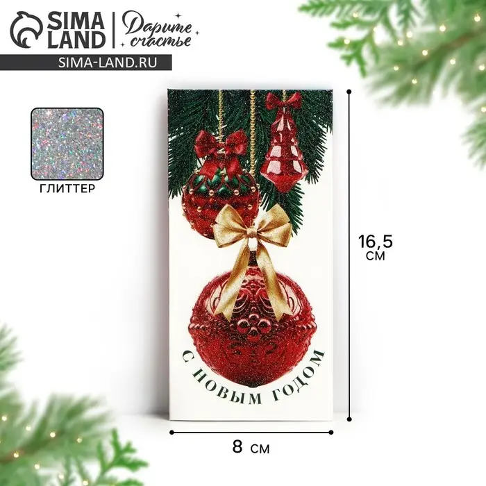 Конверт для денег «С Новым годом», глиттер, 16.5×8 см
