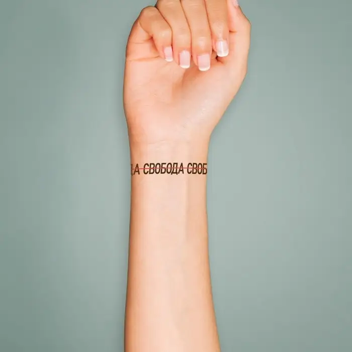 Вырази свою индивидуальность стильно! Чёрный браслет «Свобода» – переводная татуировка станет ярким акцентом в вашем образе. Эта уникальная тату создана как эффектный аксессуар для запястья, подходящий абсолютно всем.