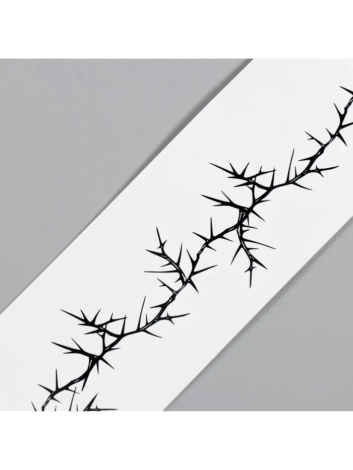 - Эффектный дизайн — шипы и линии: Подчеркните свою индивидуальность с помощью этого тату-браслета. Чёрные линии и шипы добавляют образу загадочности и шарма, легко дополняя как повседневные, так и праздничные наряды.