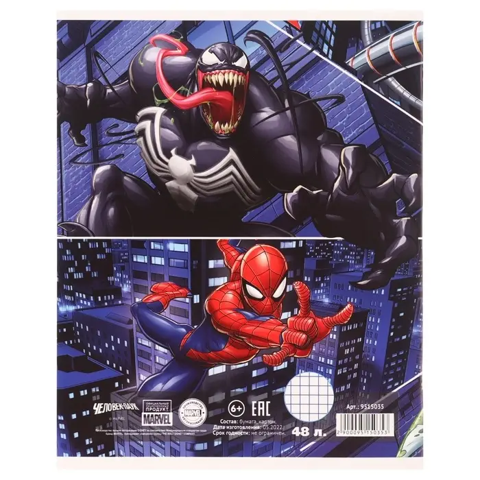 Тетрадь в клетку 48 листов, картонная обложка, блок №2, белизна 75% (серые листы), «Человек-паук»