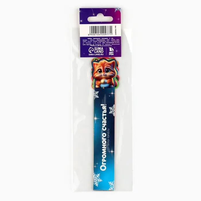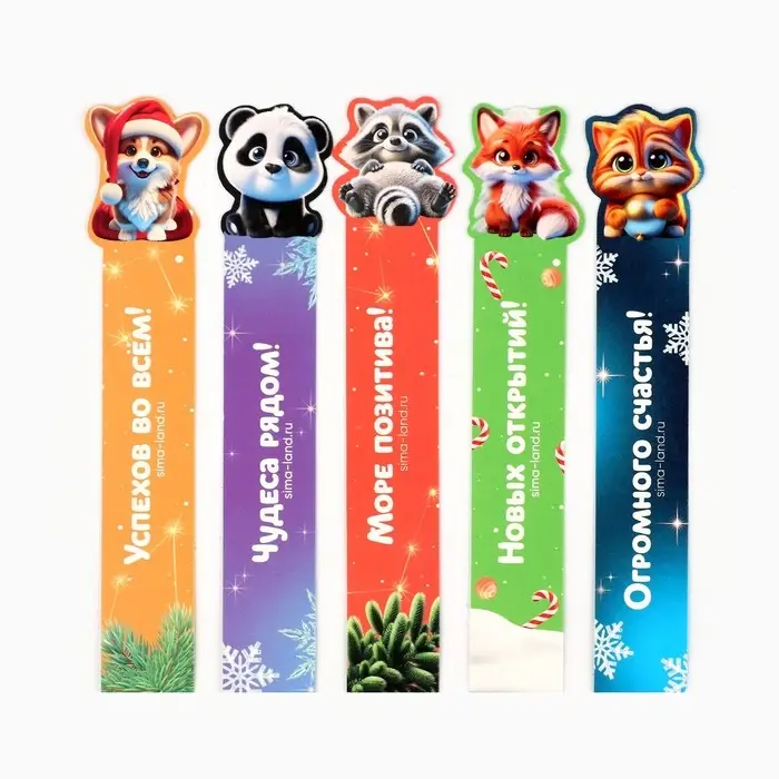 Закладки для книг, фигурные из картона, 5 шт. «Новогодние пушистики»