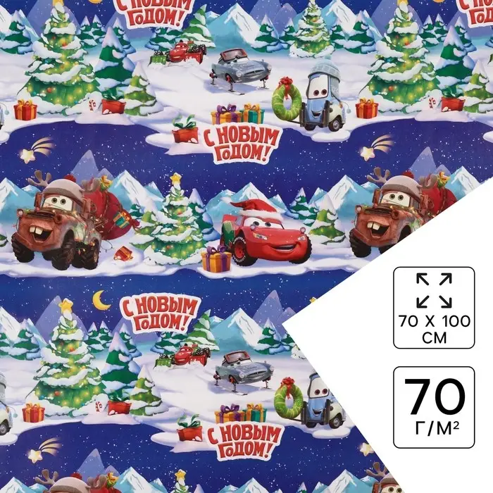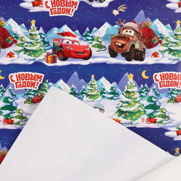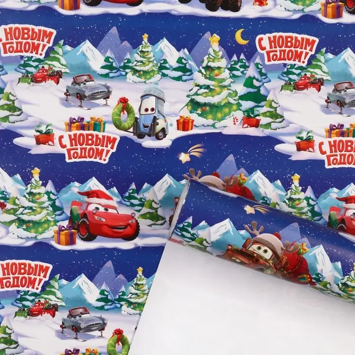 Упаковочная бумага новогодняя, 70 х 100 см, Тачки