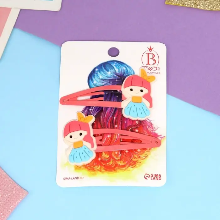 Невидимка для волос "Адель" (набор 2 шт) крошка, 5,5 см, красный