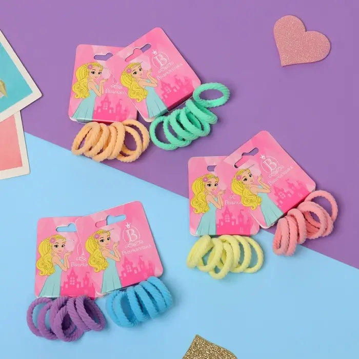 Резинка для волос "Махрушка спорт" (набор 6 шт) полосы диагональ, 2,5 см, микс