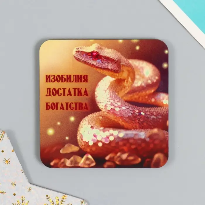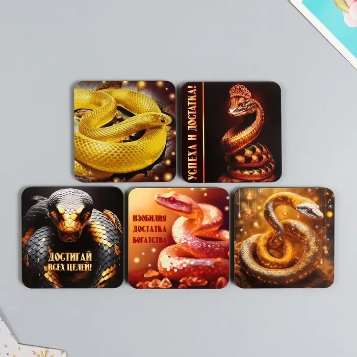 Магнит на холодильник «Золотые змеи», дерево, 7×7 см, 5 видов, МИКС