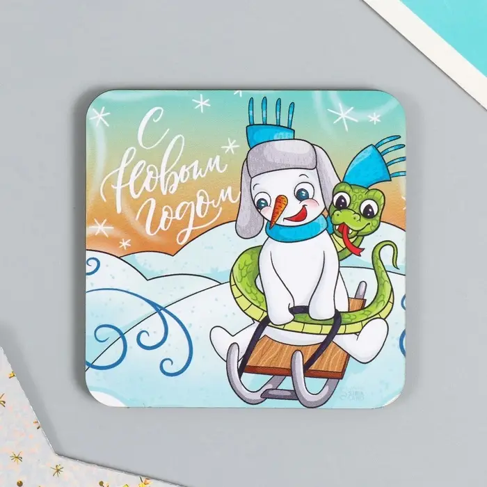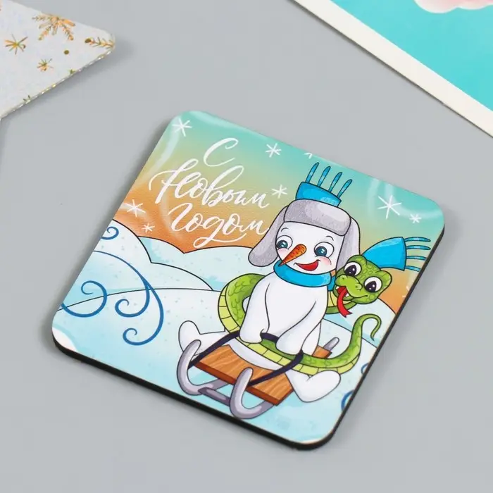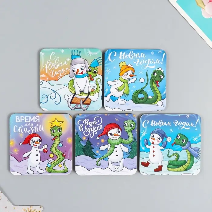 Магнит на холодильник «Змейки со снеговиками», дерево, 7×7 см, 5 видов, МИКС