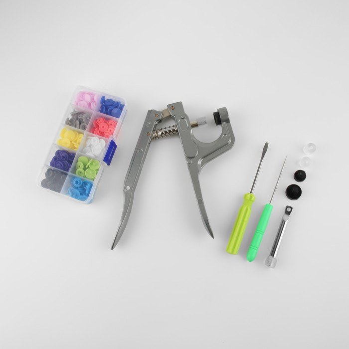 Набор для установки пластиковых кнопок: кнопки, d = 12 мм, 50 шт, щипцы, шило, отвёртка, в органайзере