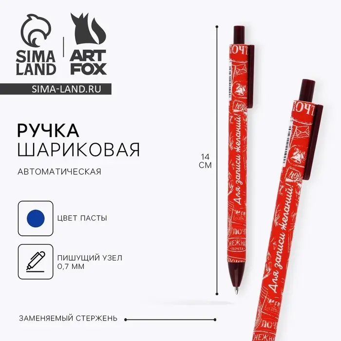 Ручка торговой марки ArtFox отлично подойдет в качестве подарка. Яркий дизайн несомненно привлечет внимание и будет выделяться среди других предметов, а удобная форма корпуса позволит использовать ее с комфортом.