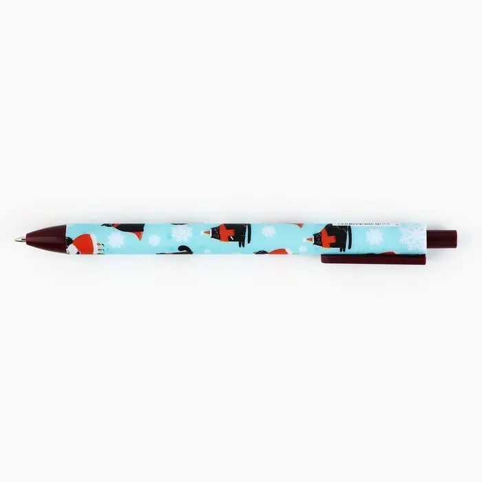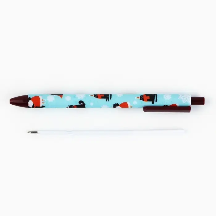 Ручка шариковая, синяя паста, 0.7 мм, автоматическая, матовая «Новый год: Кот Мороз»