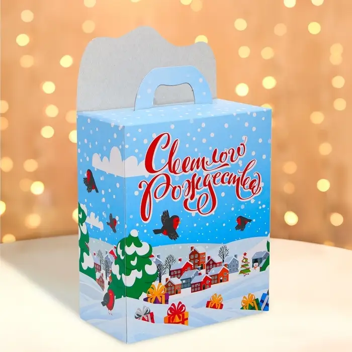 Коробка выполнена из качественных материалов, которые обеспечивают сохранность содержимого. Она имеет яркий и красочный дизайн, который отражает атмосферу Нового года.