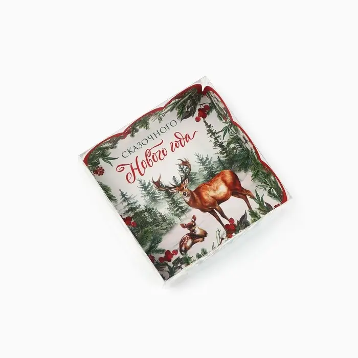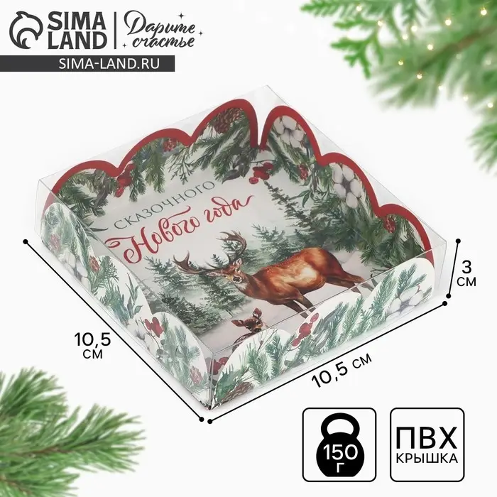 Коробка для кондитерских изделий с пластиковой крышкой «С Новым годом!», 10.5 х 10.5 х 3 см