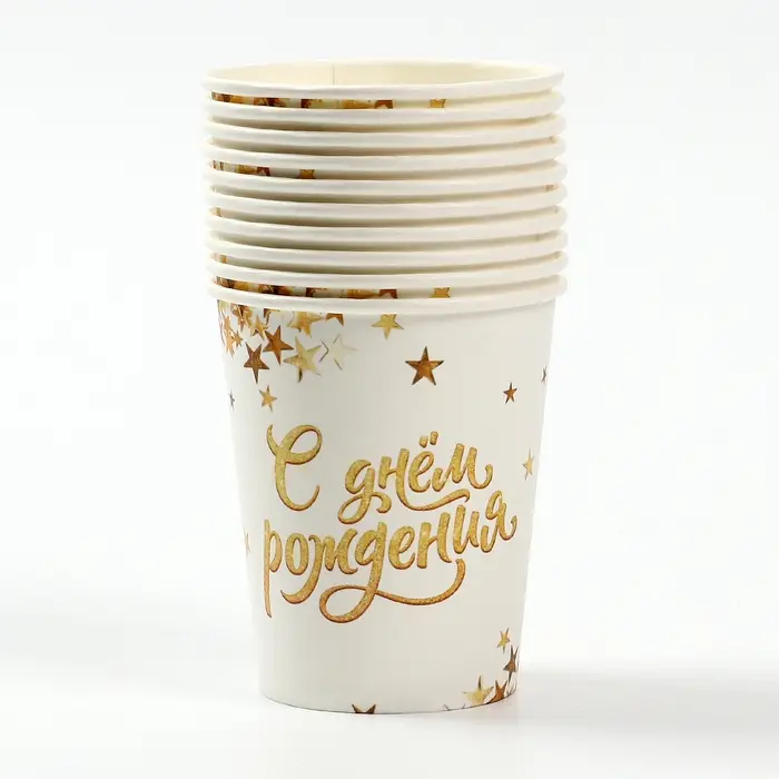 Стакан одноразовый бумажный «С днем рождения», 250 мл