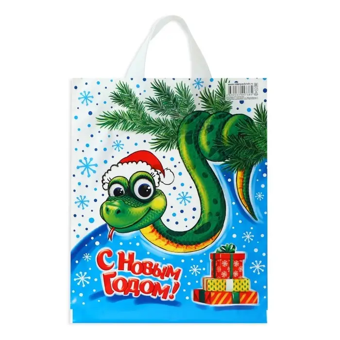 Пакет новогодний полиэтиленовый с петлевой ручкой размером — идеальный вариант для упаковки подарков и сувениров.