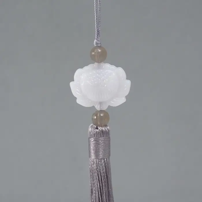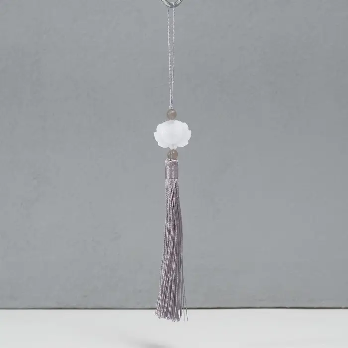 Подвеска текстиль, пластик "Кисть. Лотос" серая 1,2х2,7х14,5 см