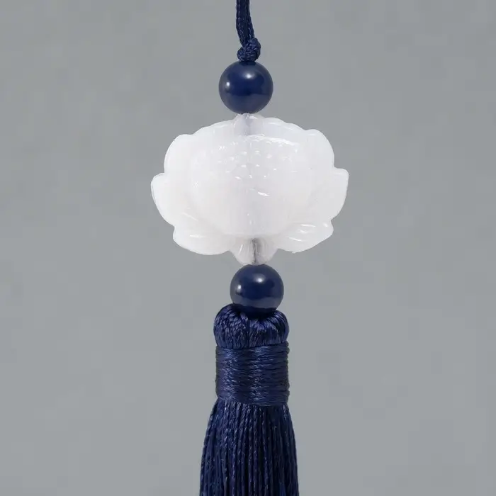 Подвеска текстиль, пластик "Кисть. Лотос" тёмно-синяя 1,2х2,7х14,5 см