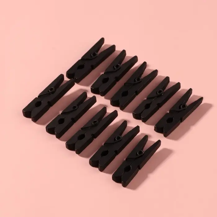 В наборе 10 прищепок чёрного цвета.