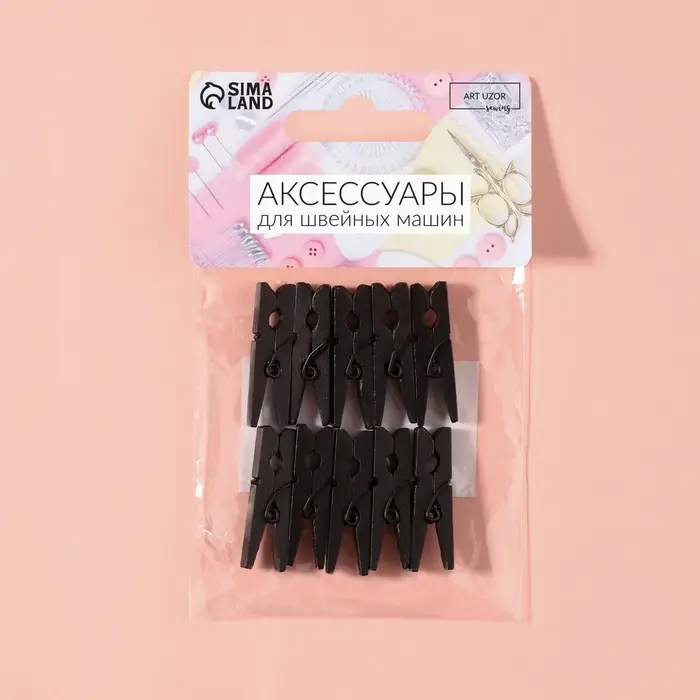 Прищепки для шитья, 3×0.9×0.3 см, 10 шт., чёрные