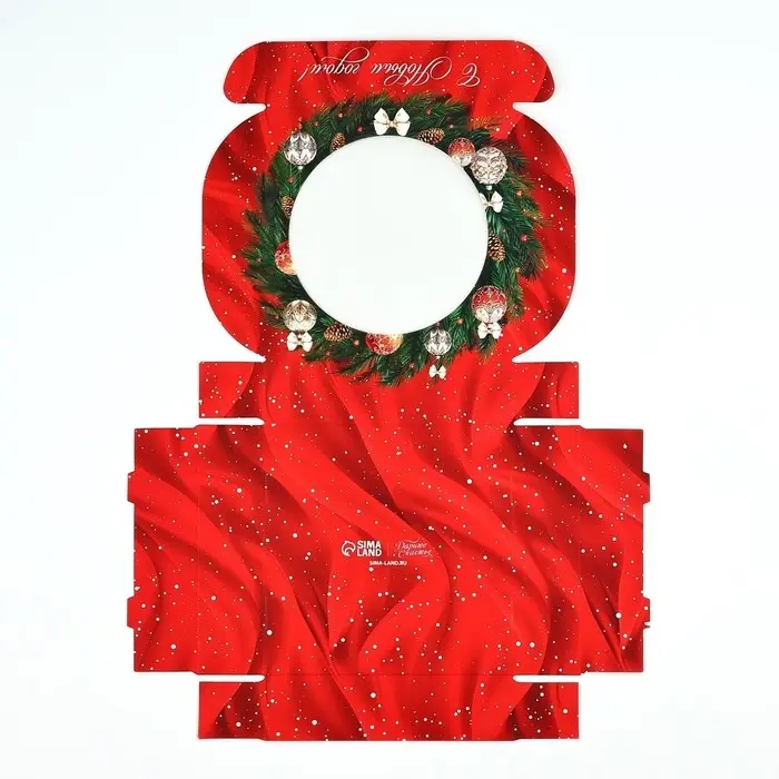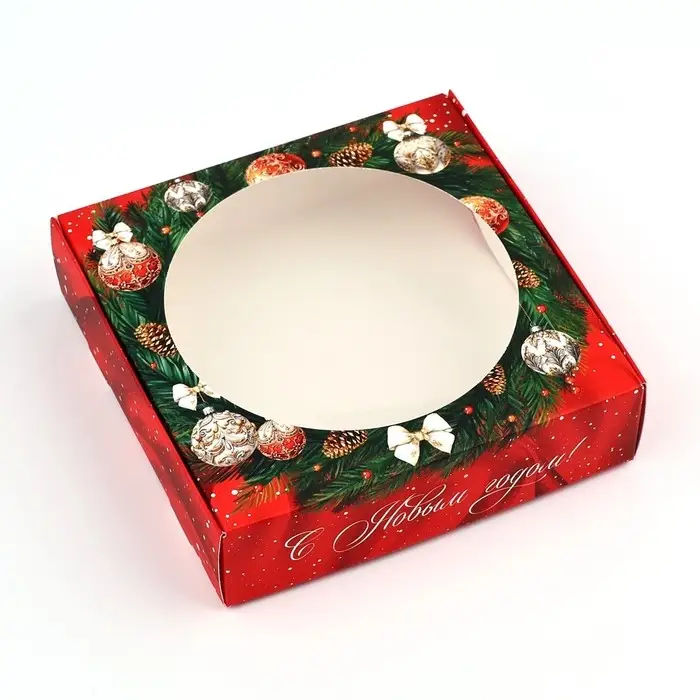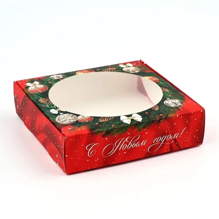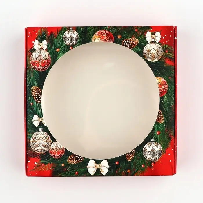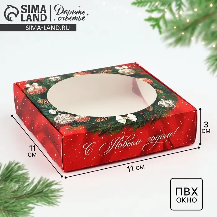 Коробка для макарун с низкими бортами «Новогодняя роскошь», венок, 11х 11х 3 см