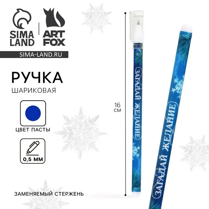 Ручка шариковая, синяя паста, 0.5 мм, с колпачком, пластик «Новый год: Загадай желание»