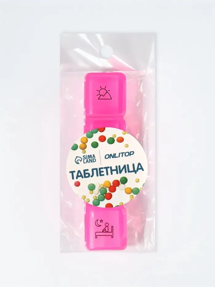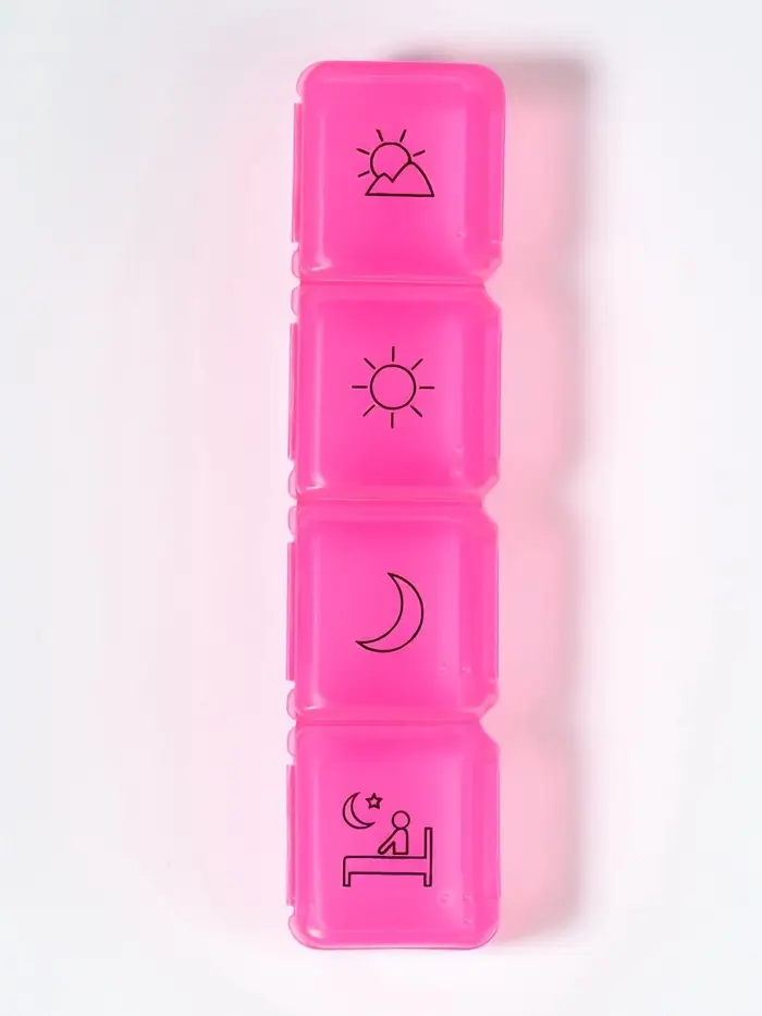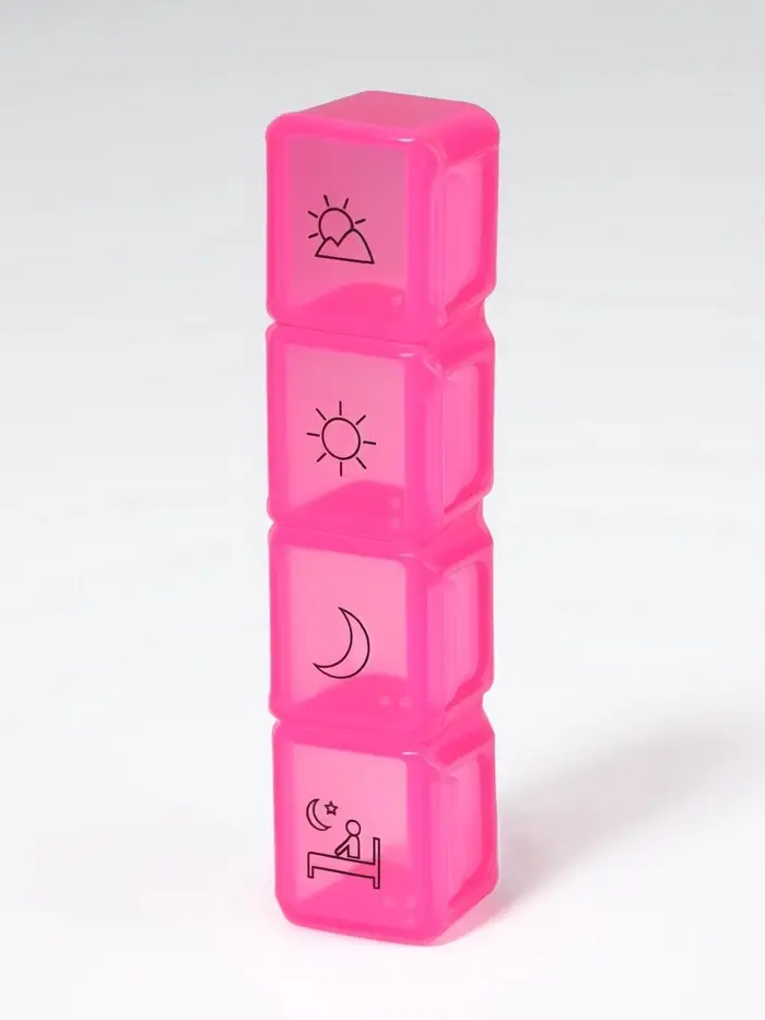 Таблетница, 10×2.3×2.3 см, 4 секции, розовая