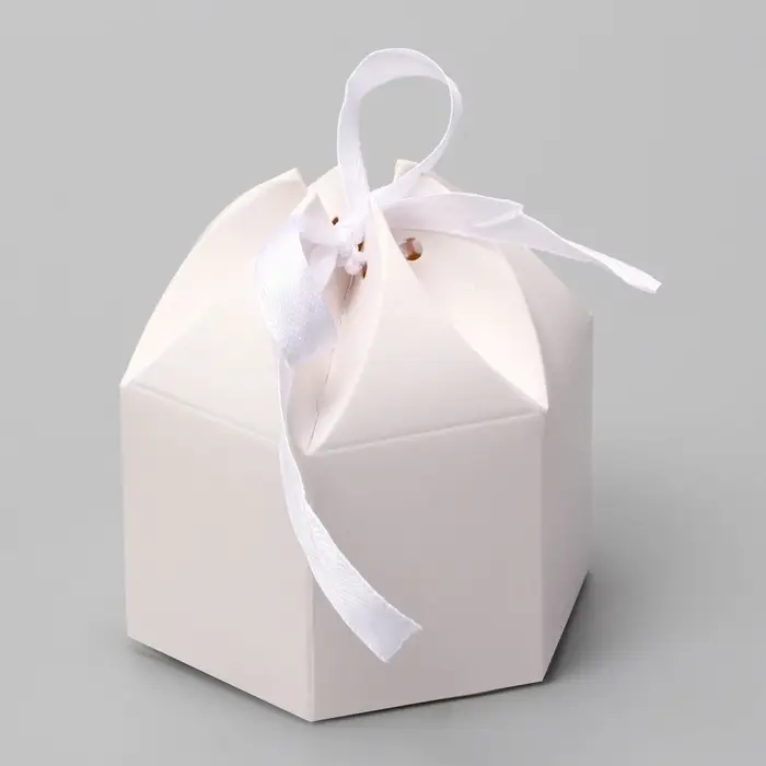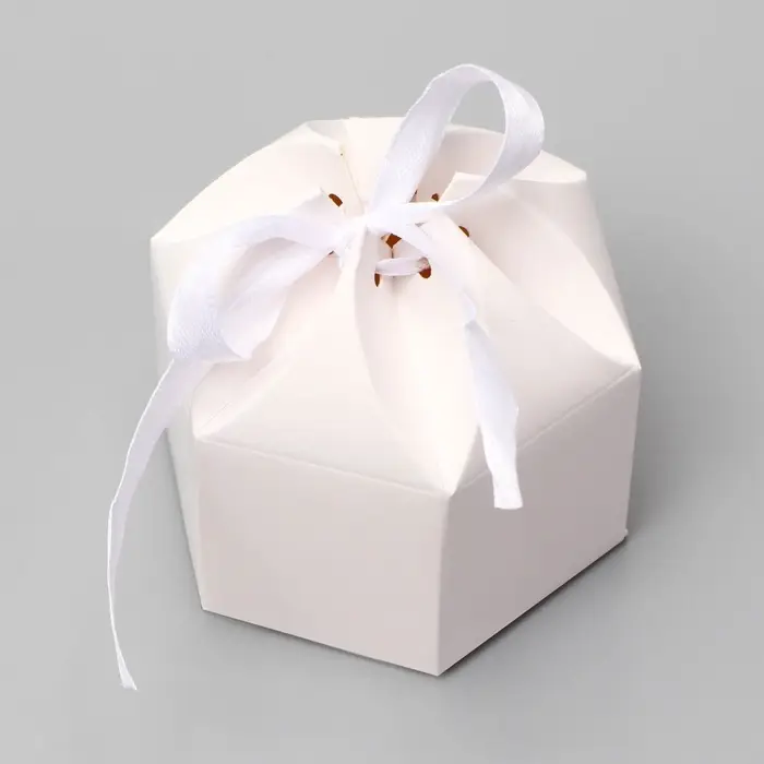 Белый цвет коробки придает ей элегантный и классический вид, что делает ее подходящей для различных событий, включая свадьбы, дни рождения и корпоративные мероприятия.