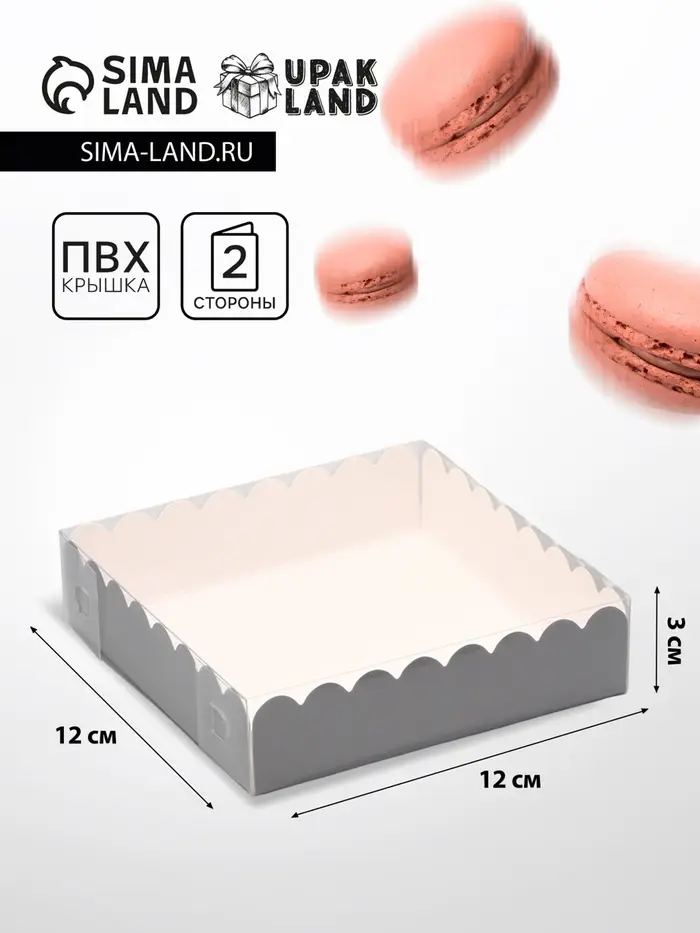 Коробочка предназначена для упаковки и транспортировки печенья. Она имеет достаточную вместимость для того, чтобы защитить продукты от повреждений и сохранить их свежесть.